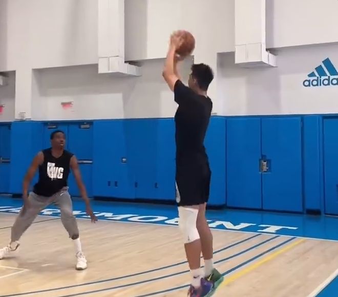 就视频来看,崔永熙基本上都是进行投篮或者持球后的组织,防守端也挺卖力,但强度没有那么高。幸好这样的动态证明了一个点,那就是崔永熙的出手速度变快了,出手也更高了。以前崔永熙的投篮就不是很好,也是他前往重点强化的。如果到时崔永熙投篮蜕变,即便速度下滑了一些,至少外线的杀伤力可以保证,这就足够了。