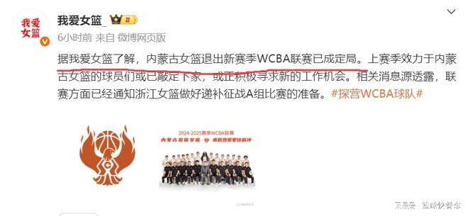 媒体人:内蒙古女篮退出新赛季WCBA已成定局,球员们或已敲定下家