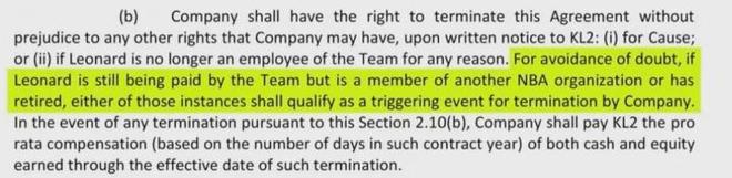 更值得关注的是,这家植树公司跟伦纳德的合同里有指向性很明确的条款:如果伦纳德离开快船,那么合同将立即终止,无法拿到全部2800万美元的代言费用。