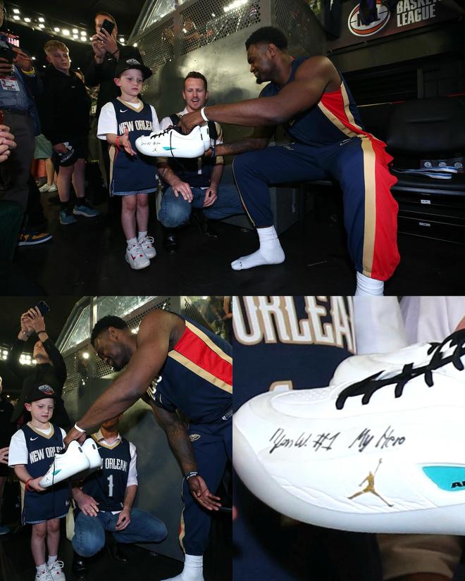 赛后,据鹈鹕官方报道:球队核心球星锡安向一位刚刚战胜了癌症的小朋友赠送了自己的亲签球鞋,并写上"你是我的英雄"。