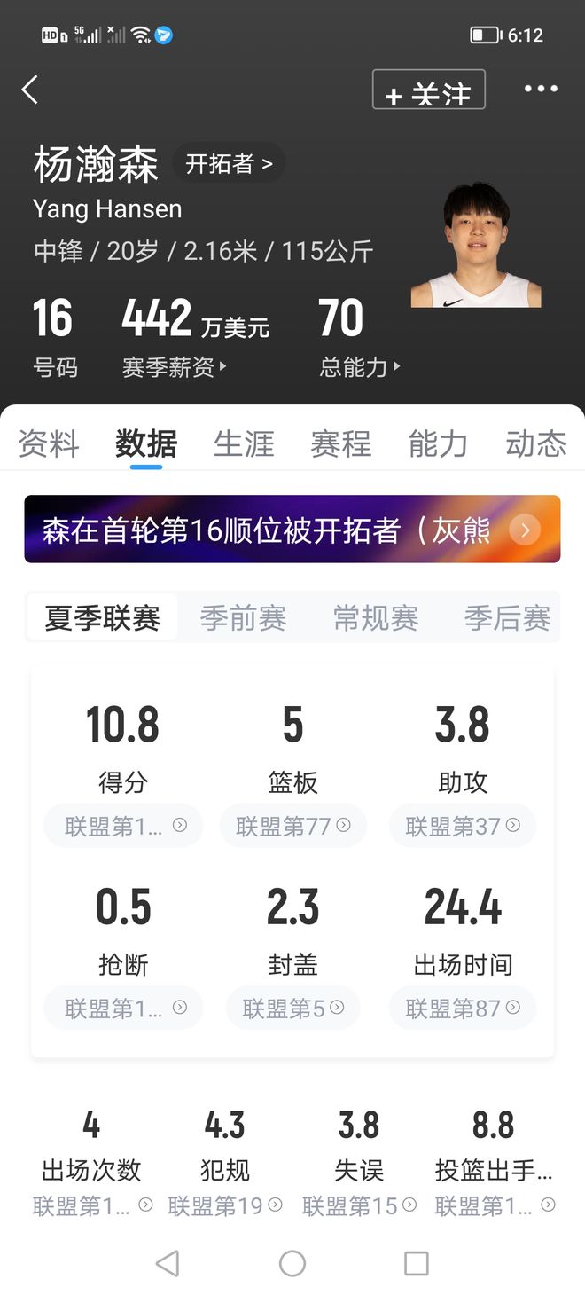 从数据上看,杨瀚森的表现确实是出战季前赛球员中最不亮眼的。好在保持了身体健康,没有出现严重伤病。