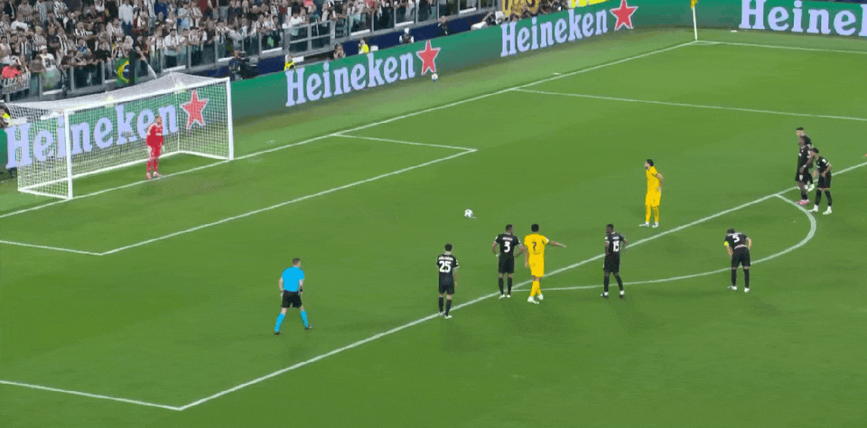 比赛第86分钟,凯利手球送点,本塞拜尼命中,多特4-2领先尤文。