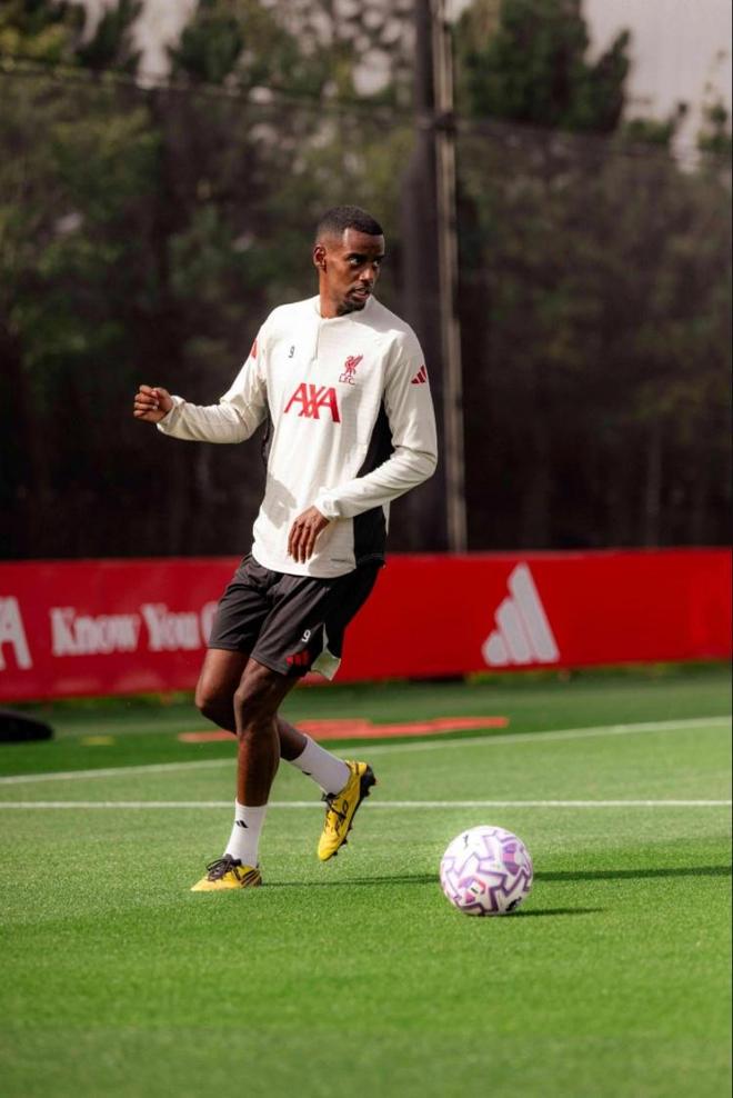 9月11日讯 利物浦官方晒照,伊萨克完成了在俱乐部的首次训练。