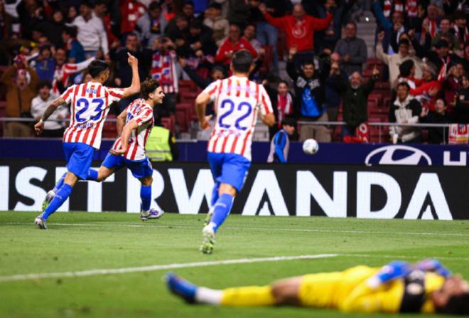 本场比赛,西蒙尼派出了最强的阵容。第15分钟,马竞右路传中,阿尔瓦雷斯在禁区里抢点,凌空垫射破门,1-0。阿尔瓦雷斯的这个进球难度极大,场边的西蒙尼也是无比惊叹。