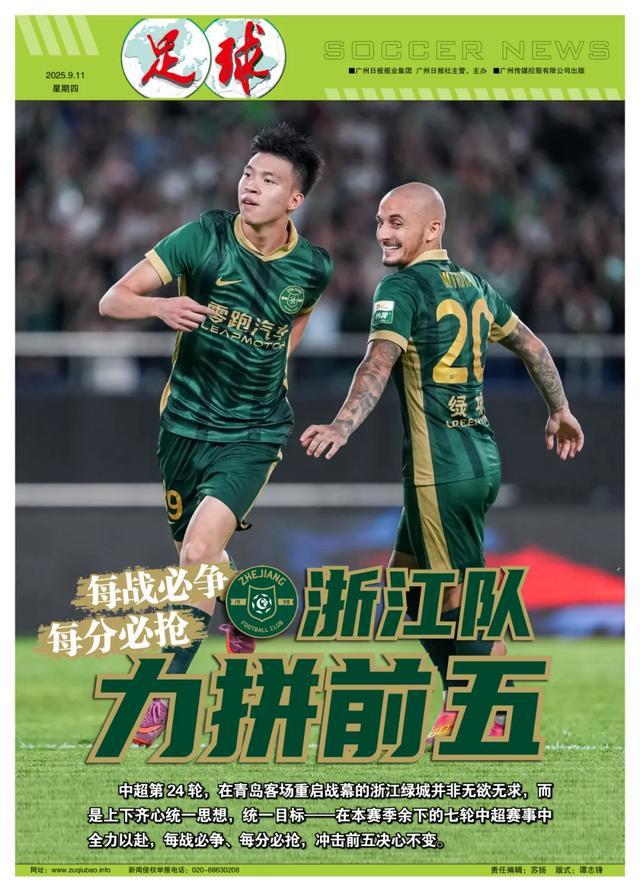 撰稿/左瑞中超第24轮,在青岛客场重启战幕的浙江绿城并非无欲无求,而是上下齐心统一思想,统一目标——在本赛季余下的七轮中超赛事中全力以赴,每战必争、每分必抢,冲击前五决心不变。