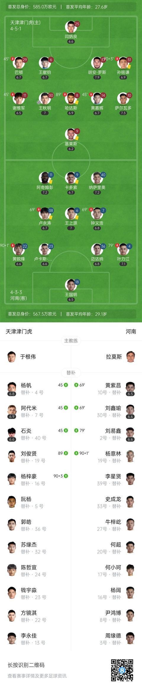 【双方首发以及替补信息】